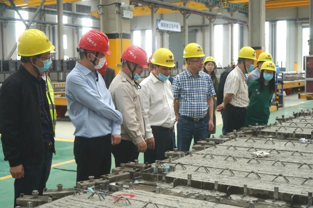 婁顯杰主任在現場認真聽取了PC構件生產基地項目概況和工廠的運營狀況,實地參觀了工廠流水線的生產運作,并對項目自運營以來取得的成績予以充分肯定。調研期間,婁主任還不時詢問該項目接下來的發展思路和工作舉措,同時對后期商品混凝土拌和站的建設提出了相關要求,希望能充分發揮混合制企業的優勢,凝聚多方力量將企業做大做強。