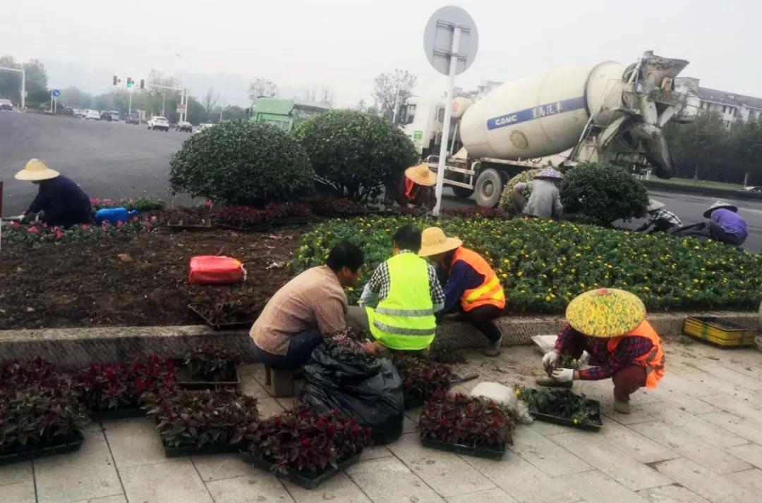 在種植過程中,工人們注重花卉顏色的搭配及變化,打造奪目絢麗的花海景觀,并利用草花對原有綠化加以點綴、修飾,形成多彩繽紛的花鏡效果;并及時清理產生的綠化垃圾、對污染的路面及時沖刷,確保做到安全文明施工。