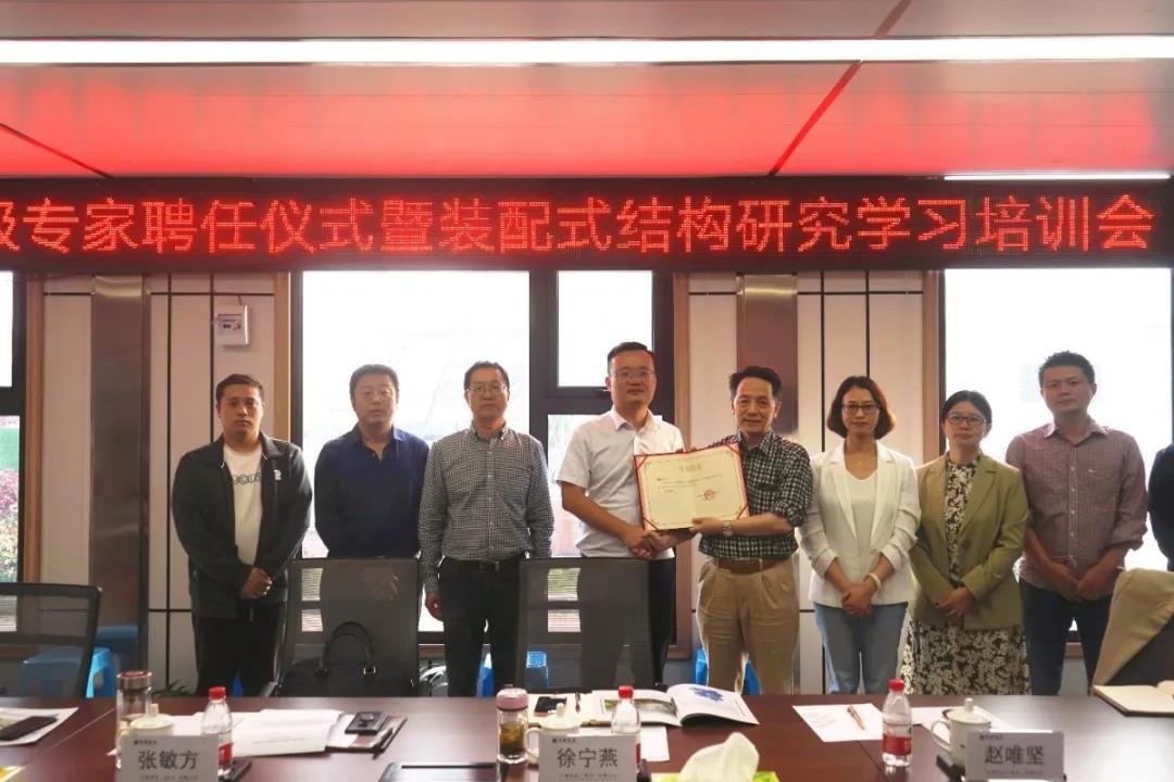 今年上半年通過對接各方資源,成功鎖定趙唯堅教授擔(dān)任高級顧問,承擔(dān)有關(guān)裝配式混凝土結(jié)構(gòu)技術(shù)業(yè)務(wù)指導(dǎo)工作。為充分發(fā)揮高級專家的示范引領(lǐng)作用,進一步促進公司裝配式結(jié)構(gòu)專業(yè)發(fā)展,10月13日下午,公司聯(lián)合中建科技在建筑工業(yè)化PC構(gòu)件項目現(xiàn)場舉行高級專家聘任儀式暨裝配式結(jié)構(gòu)研究學(xué)習(xí)培訓(xùn)會。浙江大學(xué)教授、博士生導(dǎo)師趙唯堅及雙方有關(guān)領(lǐng)導(dǎo)、工程管理人員近30人參加會議。