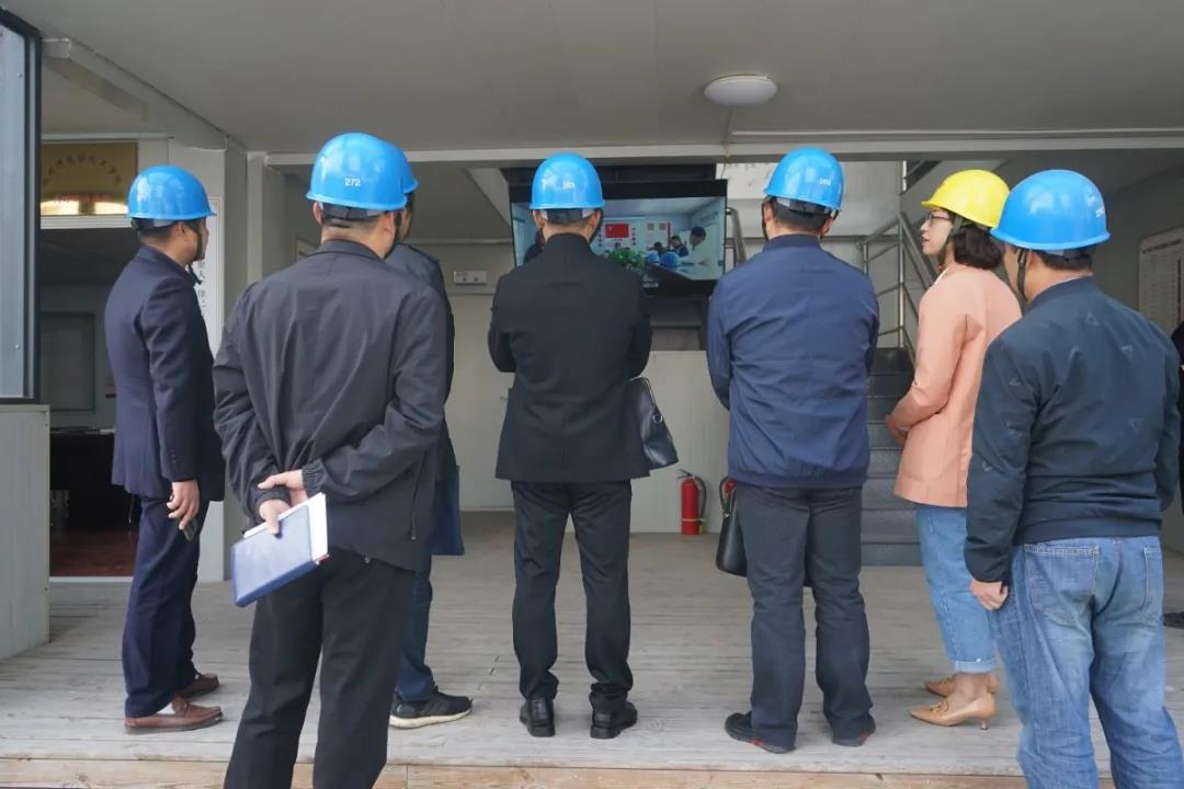吳書記一行深入項(xiàng)目現(xiàn)場(chǎng),仔細(xì)詢問項(xiàng)目概況及施工進(jìn)度、質(zhì)量安全管理等工作,又參觀了項(xiàng)目黨支部展板陳列區(qū)、黨員工作室和黨員活動(dòng)室,翻閱相關(guān)臺(tái)賬資料,駐足觀看了“紅色工地”建設(shè)宣傳片。