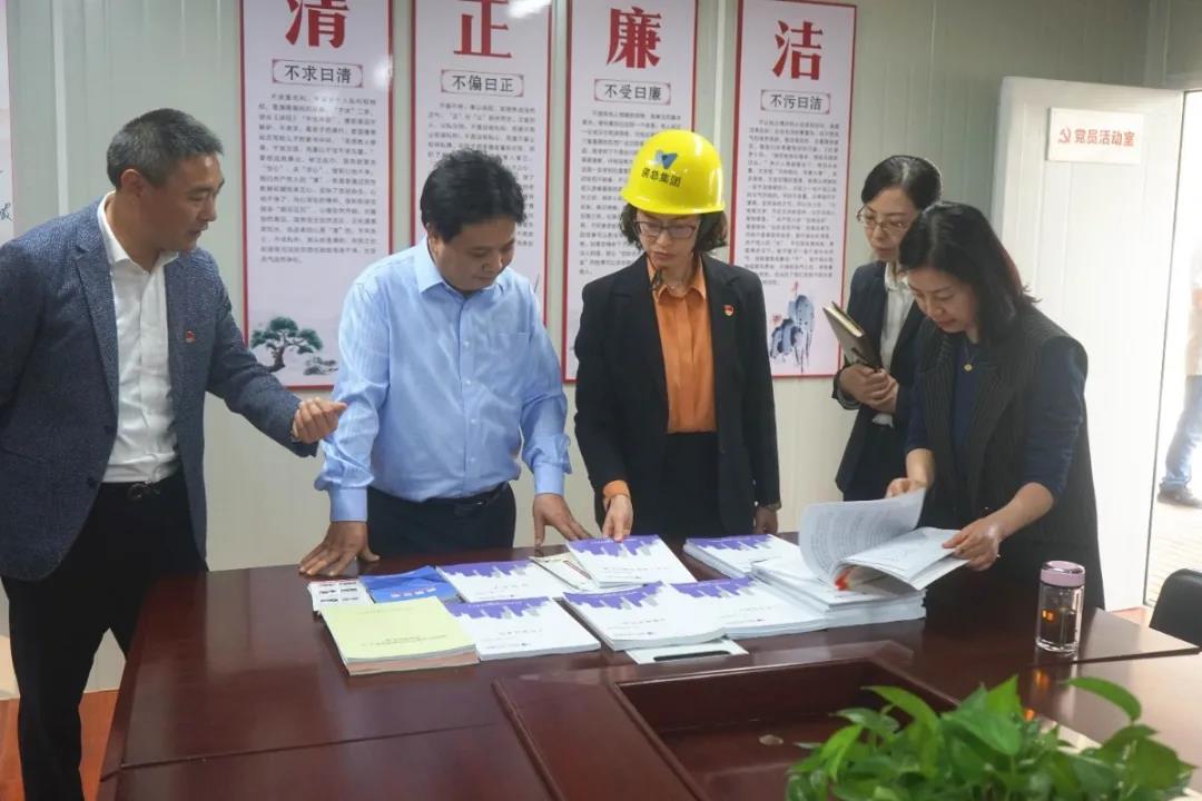 在實地查看項目建設進展情況后,婁書記一行深入項目黨支部,聽講解、看展板,并認真參觀了黨建工作室、黨員活動室、紅色文化走廊,仔細翻閱“紅色工地”宣傳冊等相關臺賬資料,駐足觀看了“紅色工地”建設宣傳片,詳細了解了公司在保障黨建工作在工地“落地生根”的各項創新舉措和項目黨支部在黨建管理模式及文明施工、質量安全、技術創新上取得的成效。