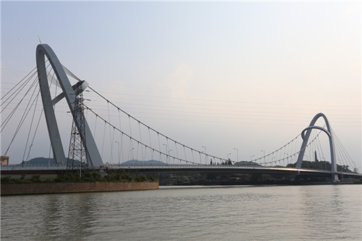 外環道路東南段全線設置雙向六車道或八車道加多功能車道,道路建設寬度為60米,道路設計時速70公里。新建成的浮玉大橋橋長585米,橋面主跨228米,寬41.6米,兩個鋼塔高71.5米。鋼結構主橋由37塊鋼箱梁吊裝焊接而成,懸浮于水面,總重達3500余噸。