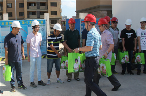 連日來(lái)的高溫酷暑牽動(dòng)著城市集團(tuán)領(lǐng)導(dǎo)的心。8月1日,市城市集團(tuán)有限公司總經(jīng)理王建民、副總經(jīng)理沈宏明、王鵬在公司領(lǐng)導(dǎo)的陪同下,冒著酷暑來(lái)到公司所屬的金田家園項(xiàng)目部,親切慰問(wèn)了高溫下辛勤工作的一線干部職工,并向奮戰(zhàn)在工程一線的職工們送來(lái)了防暑降溫用品,讓職工們?cè)诳崾钍⑾睦锔惺艿搅藳鏊?